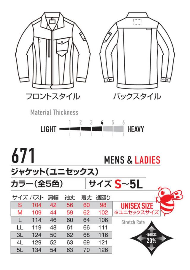 BURTLE バートル 長袖ジャケット(ユニセックス) 671 通年 サイズS〜3L