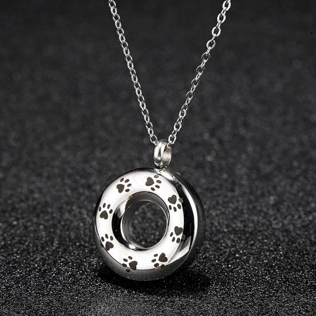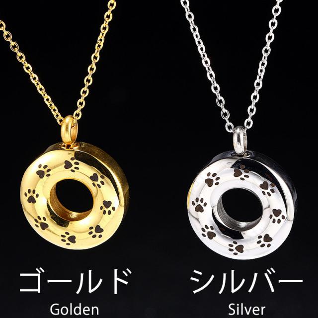 遺骨ネックレス (#gh35) アクセサリー メモリアルペンダン 遺骨ペンダント 手元供養 ペット 愛猫 犬 足跡 丸型