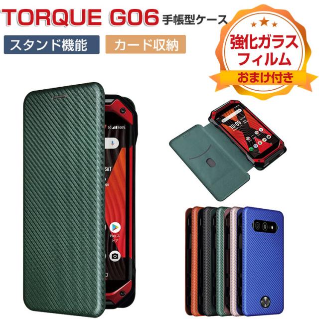 KYOCERA TORQUE G06 KYG03 ケース 耐衝撃 カバー 手帳型 財布型 TPU&PUレザー カーボン調 おしゃれ 汚れ防止 スタンド機能 便利 実用 カード収納 軽量 人気 便利性の高い KYOCERA トルク G06 KYG03 ケース 手帳型カバー CASE 強化ガラスフィルム おまけ付き
