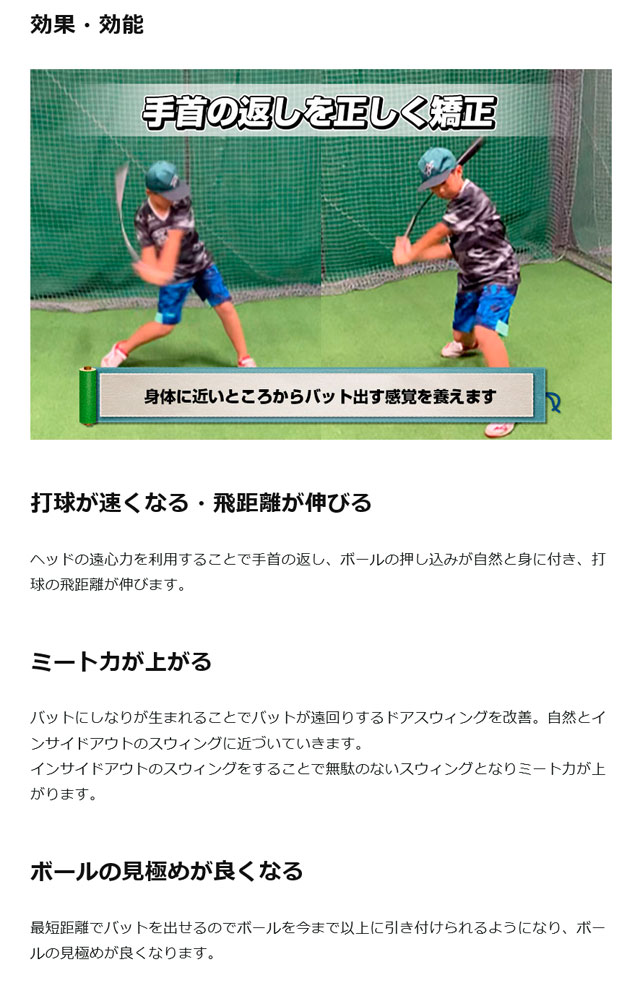 バットの軌道が遠回りになる事を防ぎ、