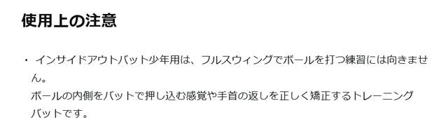 インサイドアウトバット少年用は長さが80cmと学童規格なので、