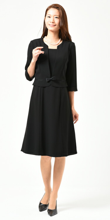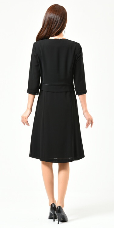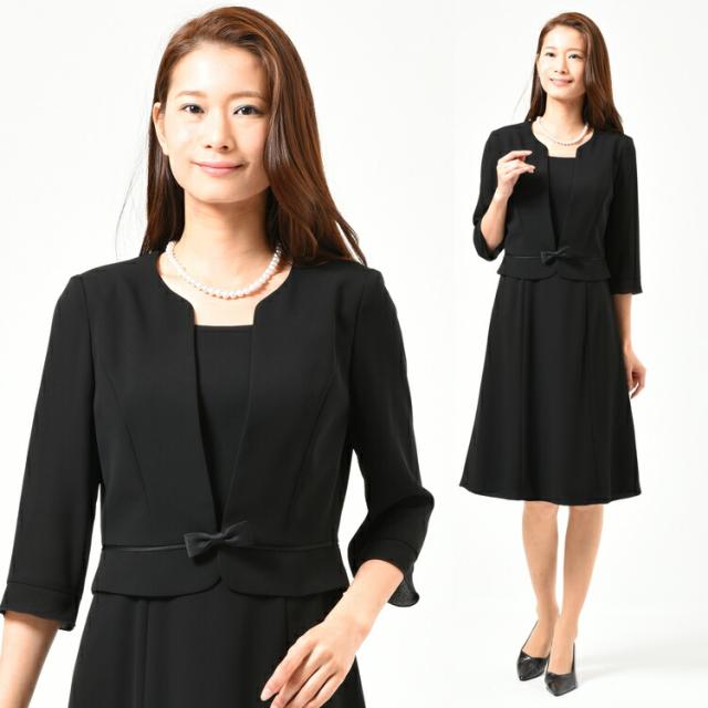 夏用 ブラックフォーマル ワンピース :RL108402 レディース 婦人 礼服 喪服【リボン取り外し可】【日本製】【7号〜17号】黒 大きいサイズ 冠婚葬祭 葬儀 葬式 法事 通夜 法要 礼装 サマーフォーマル