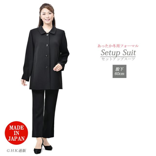 冬用 上下サイズが選べるフォーマルジャケット(JK)+パンツ(PT)のセットアップスーツ(股下60cm):RL5508-1825482 ブラックフォーマル レディース 婦人 礼服 喪服 大きいサイズ パンツスーツ