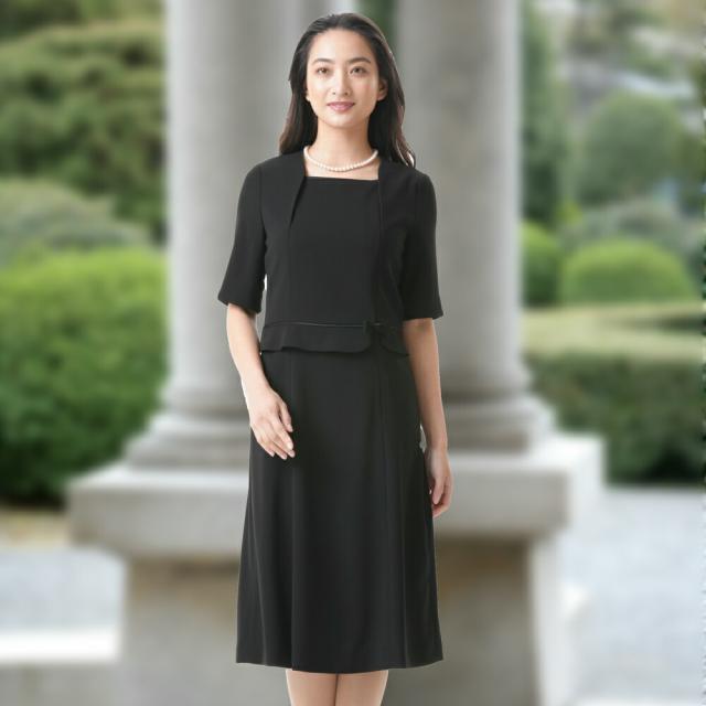 【送料無料/日本製】ブラックフォーマル 前開き通年用ワンピース :RL1624016orKV7200【ワンピース】 レディース 婦人 礼服 喪服 スリーシーズン 冠婚葬祭 葬式 葬儀 通夜 法事 卒業式 卒園式 お宮参り 七五三 おしゃれ