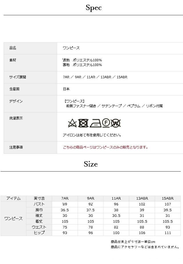 前側ファスナー開き / サテンテープ / ペプラム / リボン付属