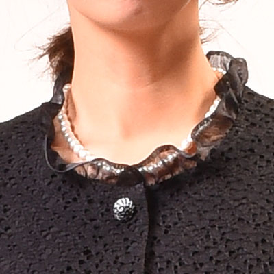 | オーガンジーのフリルが衿元を華やかにしてくれます。 |