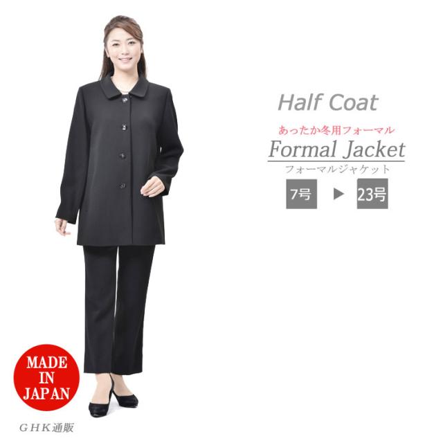 【ウールジョーゼットシリーズ】*冬物*ブラックフォーマルハーフコート婦人礼服・喪服:RL5508(ボトム別売り)【ウール100%】【日本製】
