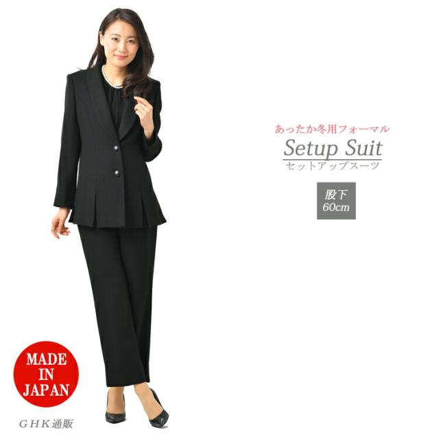 冬用 上9号、下のパンツサイズが選べるフォーマルジャケット(JK)+パンツ(PT)のセットアップスーツ(股下60cm):RL5516-1825482 ブラックフォーマル レディース 婦人 礼服 喪服 大きいサイズ パンツスーツ