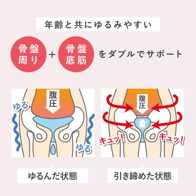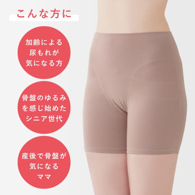 年齢とともに気になるゆるみにアプローチ。「尿もれ対策」と「骨盤ケア」をダブルでサポートしてくれる、骨盤底筋サポートショーツです。