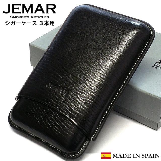 シガーケース JEMAR 葉巻ケース 3本用 スムースブラック 本革 スペイン製 牛革 黒 喫煙具 タバコ 皮 高級 おしゃれ 渋い たばこ かっこいい