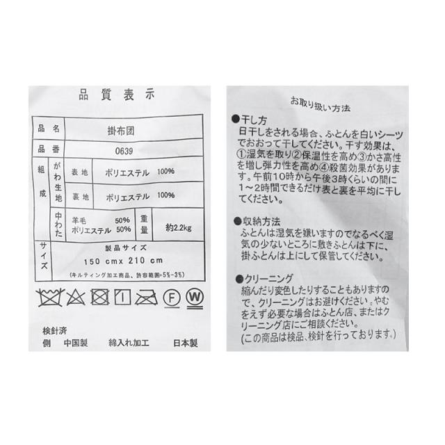 | 製品重量 | 掛け布団:約 2.9 kg |