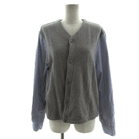 【中古】アーバンリサーチ URBAN RESEARCH シャツ スウェット切替え V襟 長袖 コットン混 グレー ストライプ 青 白 38