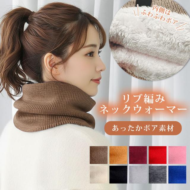 【1000円ぽっきり 送料無料!】ネックウォーマー 裏地ボア ファー リブ編み レディース メンズ ユニセックス ベージュ ホワイト マフラー 冬 おしゃれ 防寒 キッズ ジュニア ゴルフ