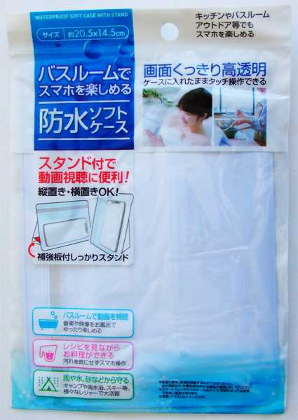 縦置き横置きスタンド付スマホ用防水ソフトケース 20.5×14.5cm (100円ショップ 100円均一 100均一 100均)