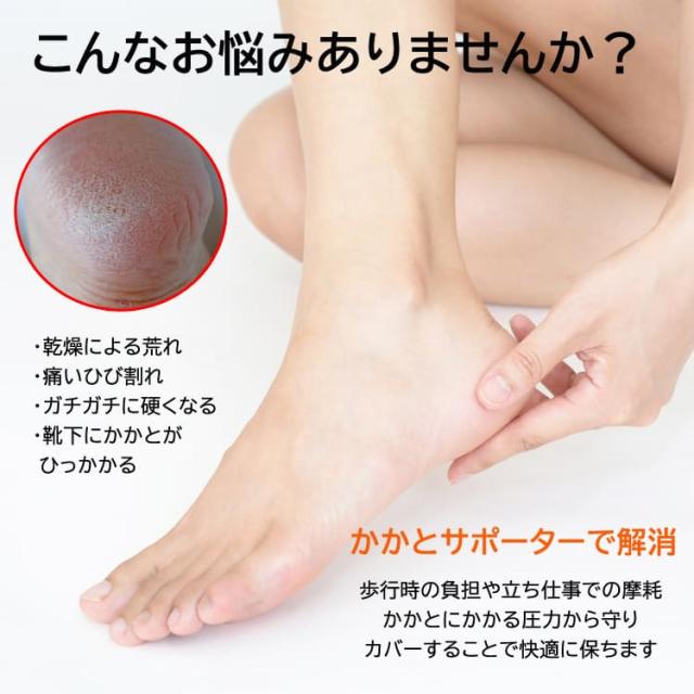 通勤通学、長時間歩行や立ち仕事、運動など、かかとにかかる圧力で荒れる肌を保護するサポーターです。