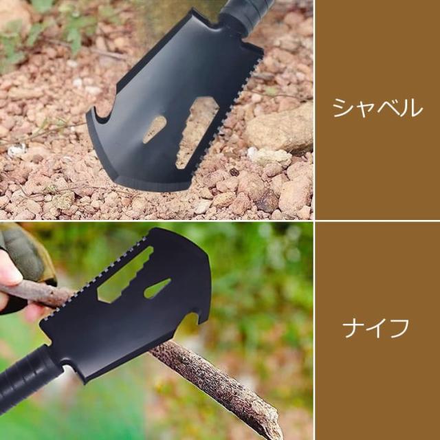 機能:シャベル/のこぎり/ナイフ/栓抜き/釘抜き/六角レンチ