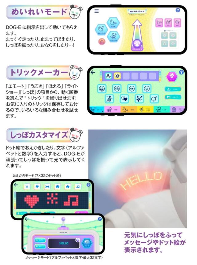 専用のアプリを使うと、さらにできることが多くなってDOG-Eといっしょに遊べます!