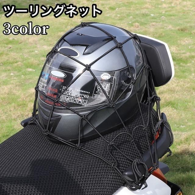 バイクへの荷物固定に欠かせないツーリングネットです。