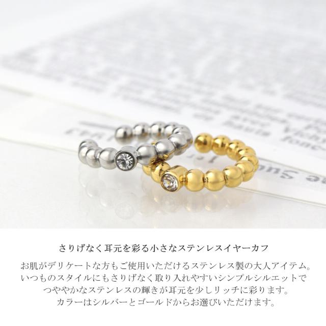 ステンレス ジルコニア イヤーカフ 1P 片耳用 サージカルステンレス 18金 K18 コーティング 金属アレルギーフリー ニッケルフリー シルバー ゴールド