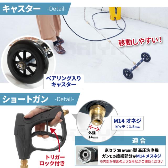 高圧洗浄機 アタッチメント 下部洗浄ノズル キャスター ショートガン付き 京セラ RYOBI シャーシクリーナー 下回り トラック 乗用車 洗車用品 カー用品 KIKAIYA