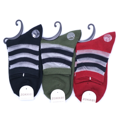 【送料無料】 クルーソックス ボーダー柄 (ブラック・グリーン・レッド) (23-25cm) (3足セット) / みっとめるへん社