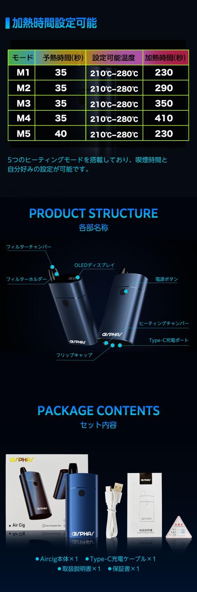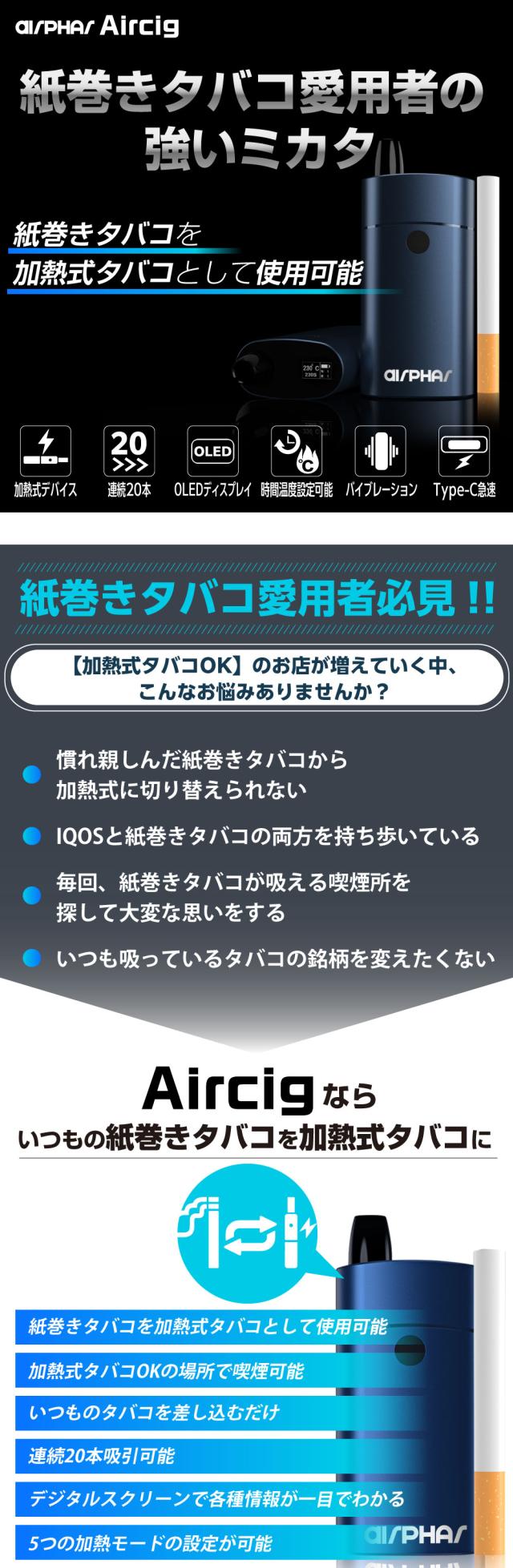 Aircig エアシグ 紙巻きたばこ 加熱式 ヴェポライザー 加熱式タバコ 電子タバコ スターターキット Vaporizer ベポライザー 喫煙具 禁煙 エアーシグ