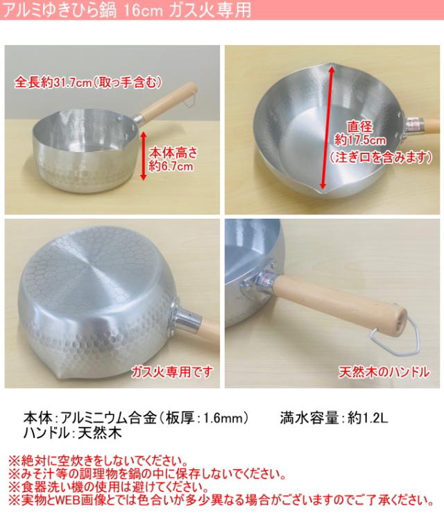 ガス火専用 アルミゆきひら鍋 16cm ゆきひら鍋 雪平鍋 アルミ 片手鍋 煮物 みそ汁 ガス火専用 一人暮らし ひとり暮らし