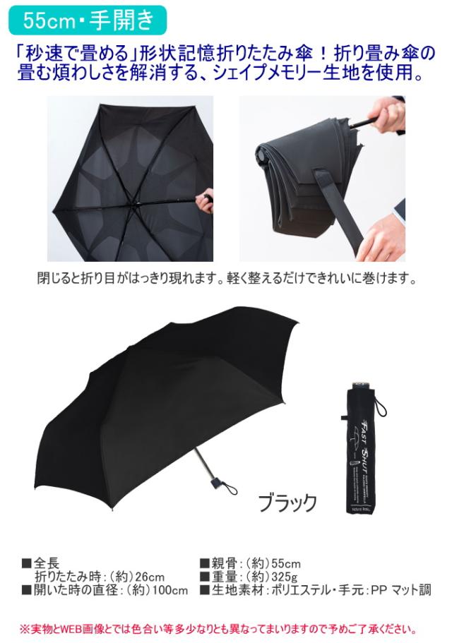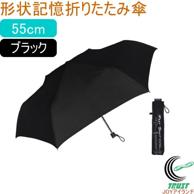 形状記憶折りたたみ傘 ファストシャット 無地 55cm ブラック 723-050 折り畳み傘 シンプル 携帯 ブラック 形状記憶