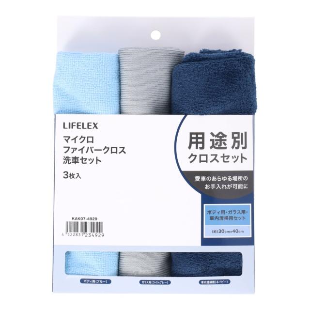 マイクロファイバークロス洗車セット3枚入り KAK07−4929 (約)30×40cm コーナンオリジナル LIFELEX