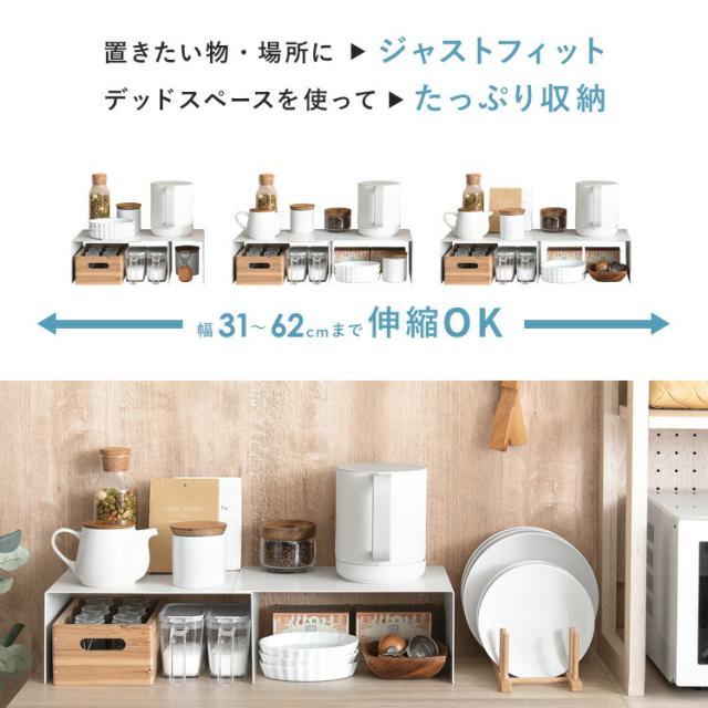収納棚 伸縮 棚 収納ラック 伸縮ラック キッチン収納 収納 収納家具 ラック 便利棚 モニター台 小物収納 調味料ラック 調味料棚 スチール 北欧 ナチュラル 便利 台