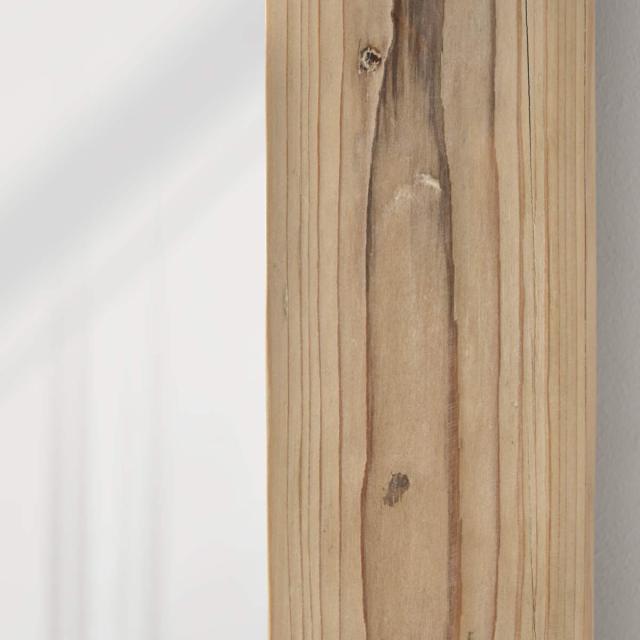 枠はモミ古材を使用しており、天然木ならではの温かみを感じられます。木目やフシ、表面の傷や打痕のような跡などは個体差があり、ひとつひとつ違った表情をお楽しみいただけます。