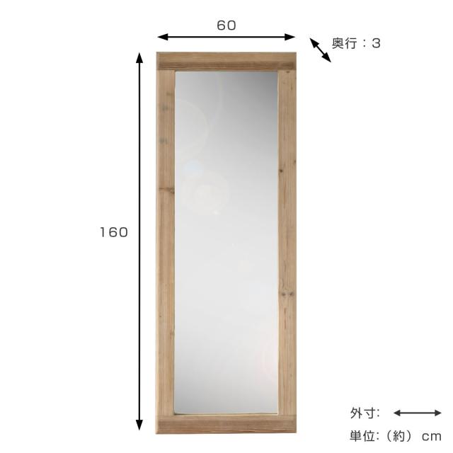 ミラー 全身 木枠 天然木 古材 60×160cm ( 大きめ 大きい 鏡 かがみ 立てかけ 立掛け 完成品 木製 フレーム 玄関 リビング クローゼット アンティーク風 )