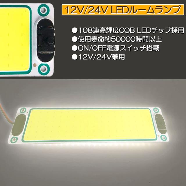 ルームランプ LED 室内灯 4個セット 貨物灯 車内照明 汎用 小型車 キャンパー トラック 12V 24V マーカーランプ キャンピングカー テントライト 作業車用 COB素子 PCカバー 電源スイッチ付き ネジ 両面テープ付き カバーなし
