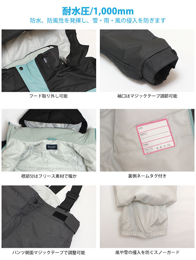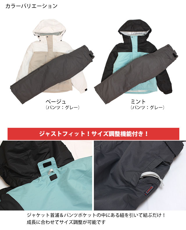 スキーウェア 上下セット キッズ ジュニア 女の子 子供 サイズ調整付き スノーウェア 耐水圧1000mm 超撥水加工