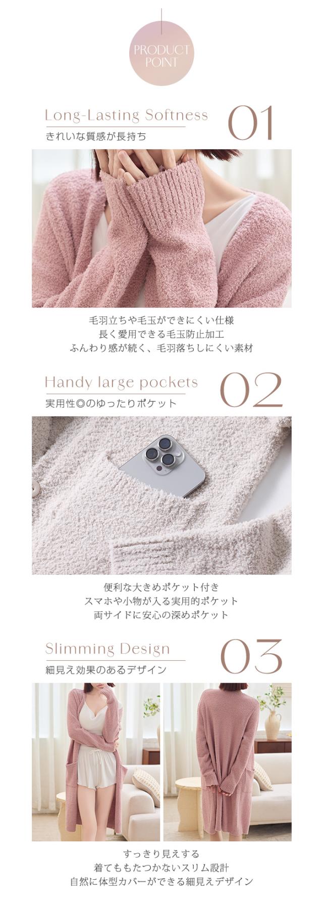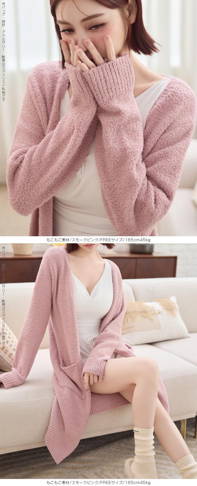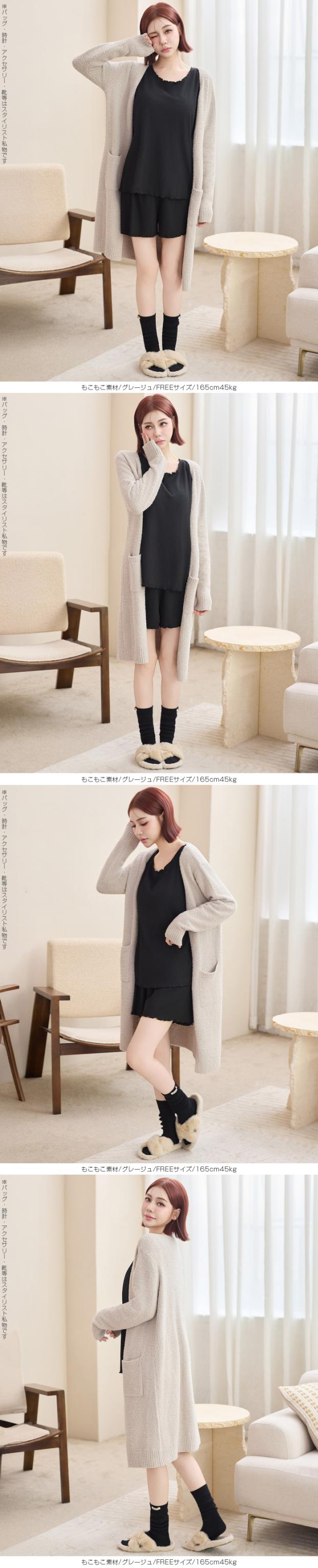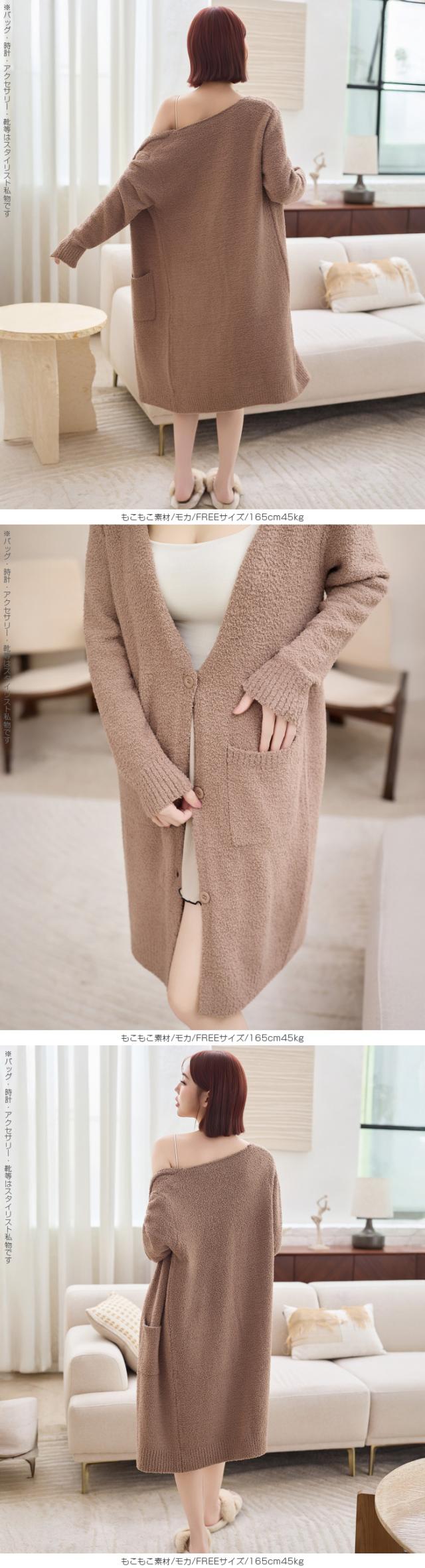 【もこもこカーディガン】 ふんわり柔らかな肌触りが魅力のロングカーディガン。 保温性が高く軽やかな着心地で、 秋冬のリラックスタイムからワンマイルの お出かけまで幅広く活躍します。 シンプルな無地デザインに、便利なポケットをプラス。 デイリーに着まわしやすい万能アイテムです。 《商品ポイント》 もこもこ素材で暖かく、やみつきになる肌心地 膝丈のロングデザインで体型カバーにも◎ 両サイドに便利なポケット付き シンプルな無地でコーディネート自在 軽量で羽織りやすくデイリーに活躍 《デザイン・シルエット》 膝下までしっかりカバーできるロング丈 Vネックデザインで顔まわりをすっきり見せ ゆったりしたシルエットで着心地抜群 袖口と裾はリブ仕様で程よいフィット感 《コーディネート提案》 ワンピースに羽織ってフェミニンな大人スタイルに デニム×Tシャツに合わせてカジュアルコーデ キャミソールやルームウェアに羽織ってリラックスムードを演出 同色系でまとめて大人っぽいワントーンコーデ 寒い季節はタートルネックやニットと重ね着して暖かさ倍増 《サイズ・カラーバリエーション》 サイズ:FREEサイズ ・カラー:スモークピンク/グレージュ/モカ 《素材・機能性》 ・素材:ポリエステル100% ・もこもこで軽いのに暖かい生地感 ・なめらかでチクチクしにくい肌触り ・秋冬春とロングシーズン着用可能 ・洗濯しても型崩れしにくいイージーケア素材 |