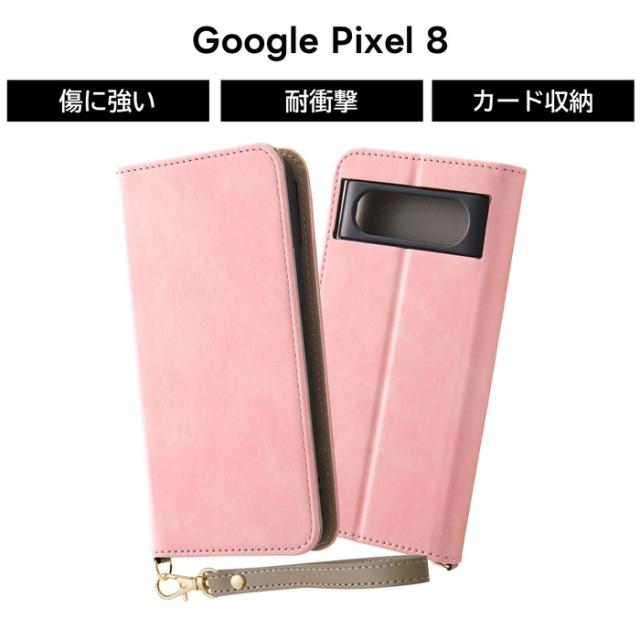 Google Pixel 8 ケース 手帳型 Pixel8 グーグル ピクセル エイト ピンク レザー ストラップ付き シンプル ソフト ハード スマホケース カード収納