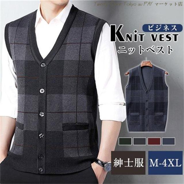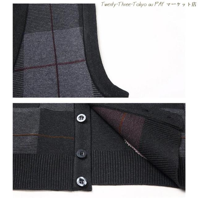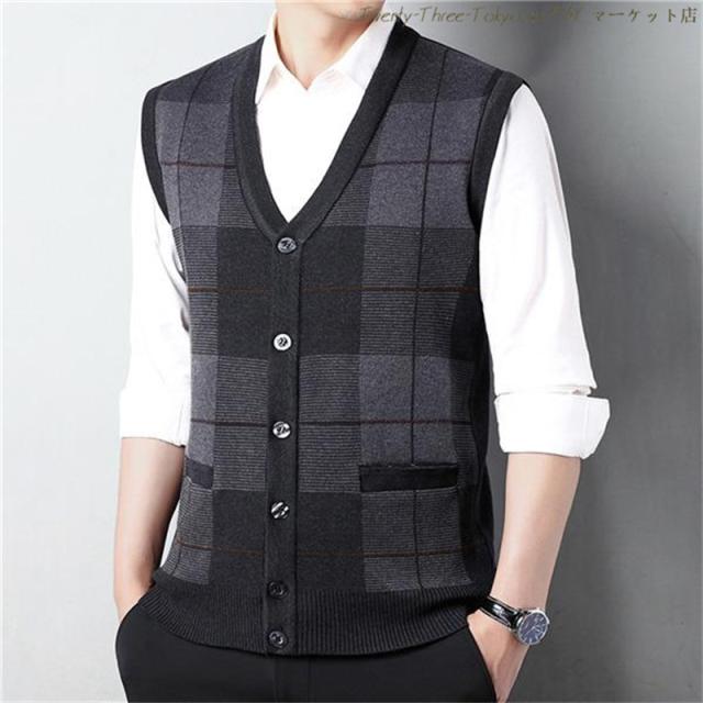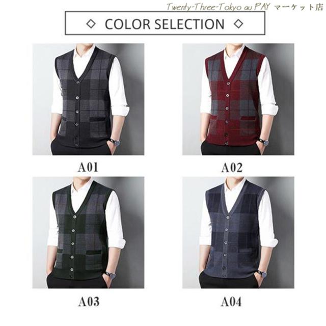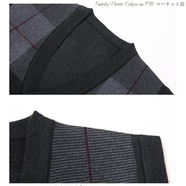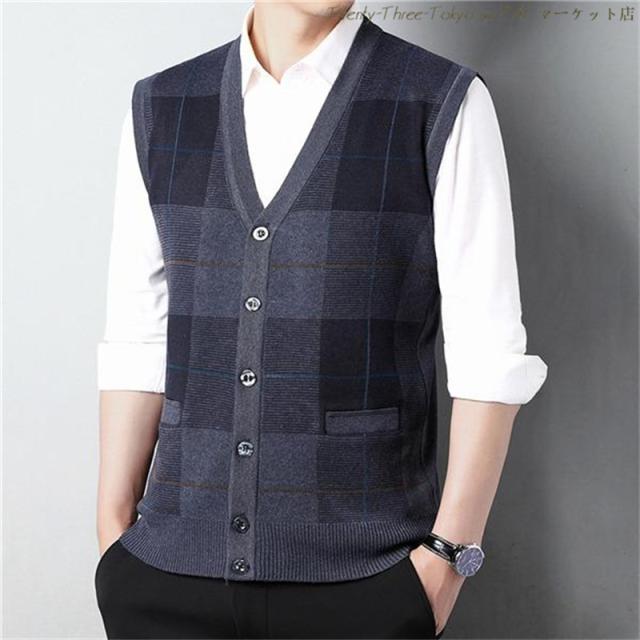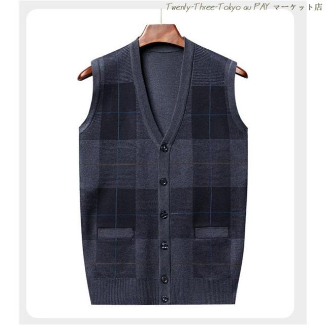 送料無料 ニットベスト メンズ シニア トップス チョッキ カーディガン チェック柄 ジレー セーター カジュアル ゴルフ 紳士服 ビジネス 通勤