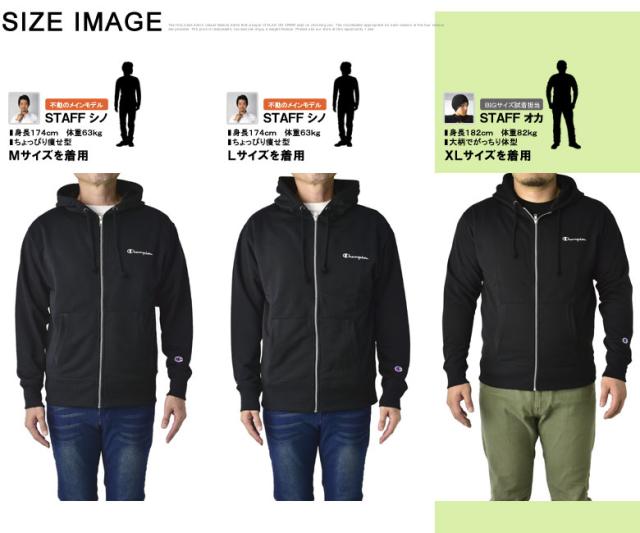 ※サイズはチャンピオン公式オフィシャルサイトに記載されている数値です。実際のサイズと若干の誤差が生じる場合がございます。公式サイトでは+-2cmまでを許容範囲としております。