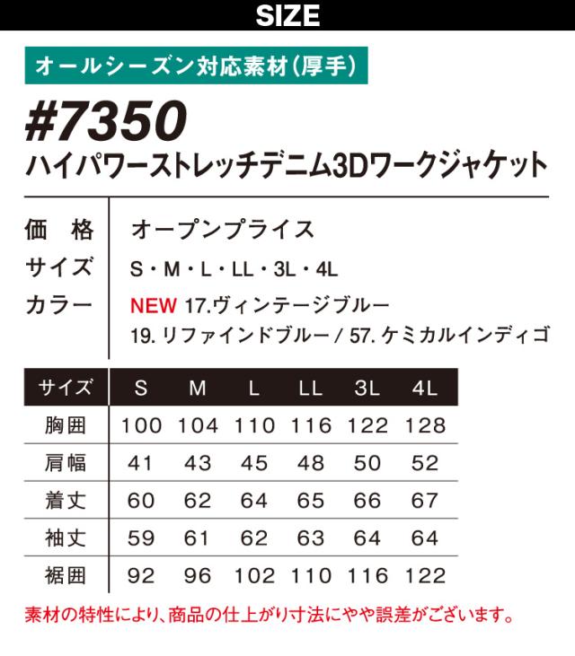 アイズフロンティア ハイパワーストレッチデニム3Dワークジャケット 7350 10.5オンス オールシーズン 作業服 作業着 かっこいい おしゃれ I’Z FRONTIER