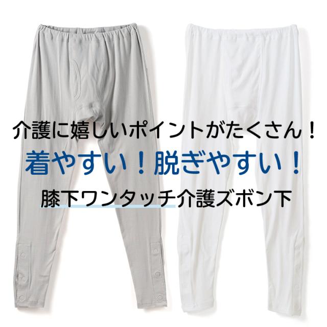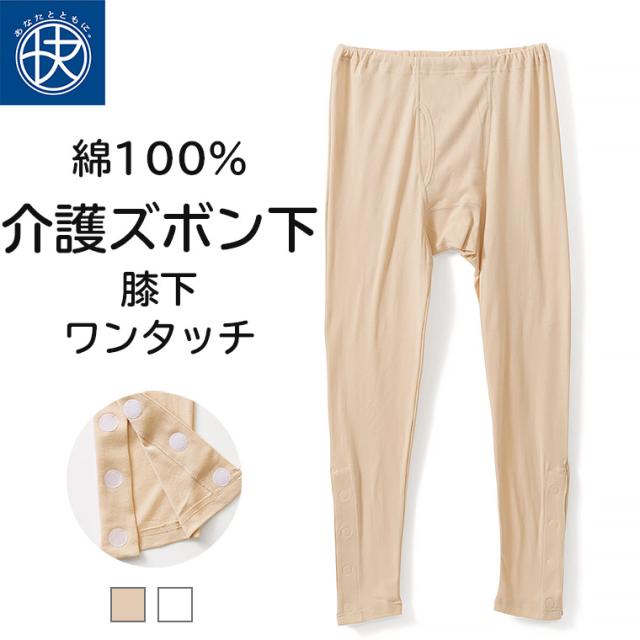 膝下ワンタッチ ズボン下 介護 綿100% メンズ 介護下着 介護ウェア ワンタッチ マジック テープ ボタン シニア 紳士 男性 抗菌防臭 肌着 介護用品 入院用 病院用 インナー こころよい Q4055T-E