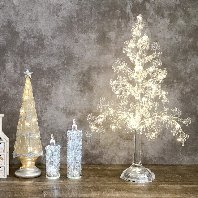 細い枝ぶりのエレガントなフォルムのLEDライト付きクリスマスツリーオブジェ。