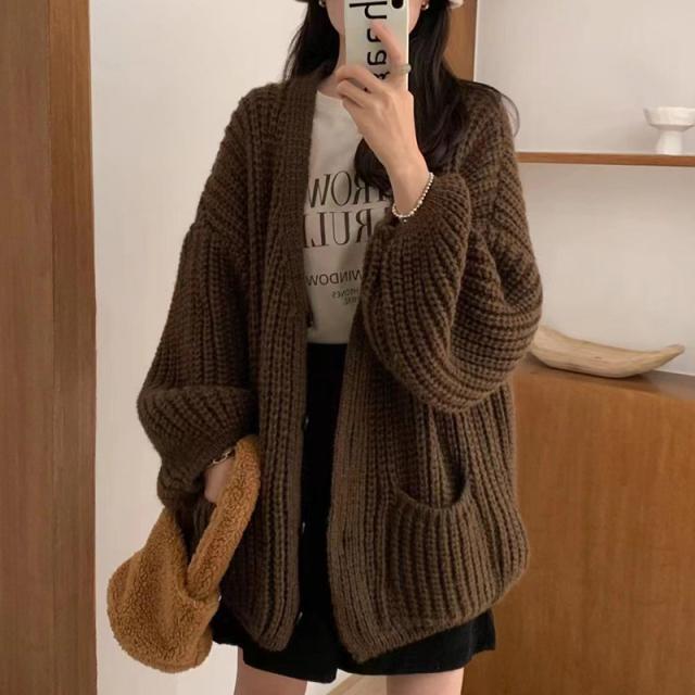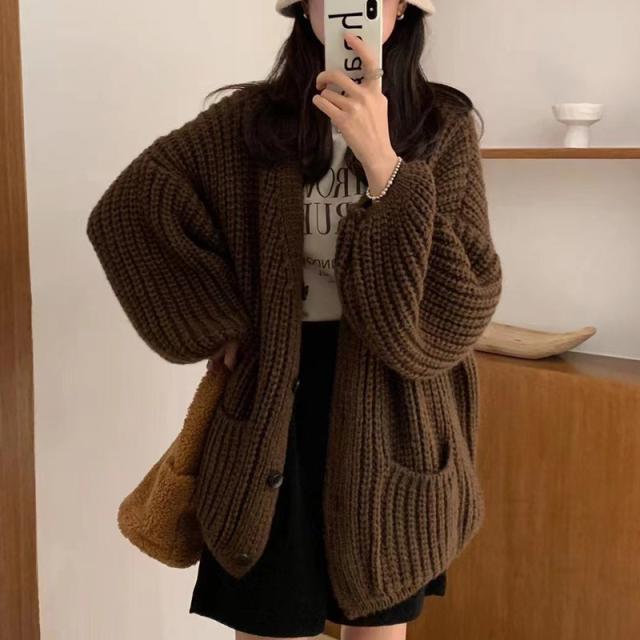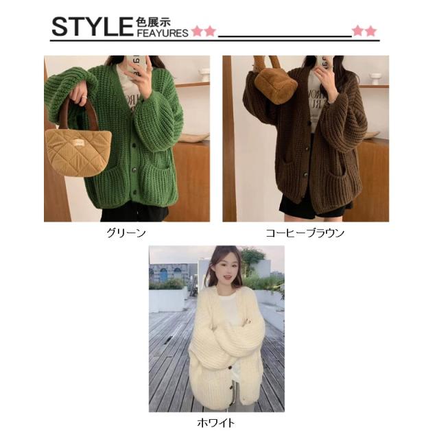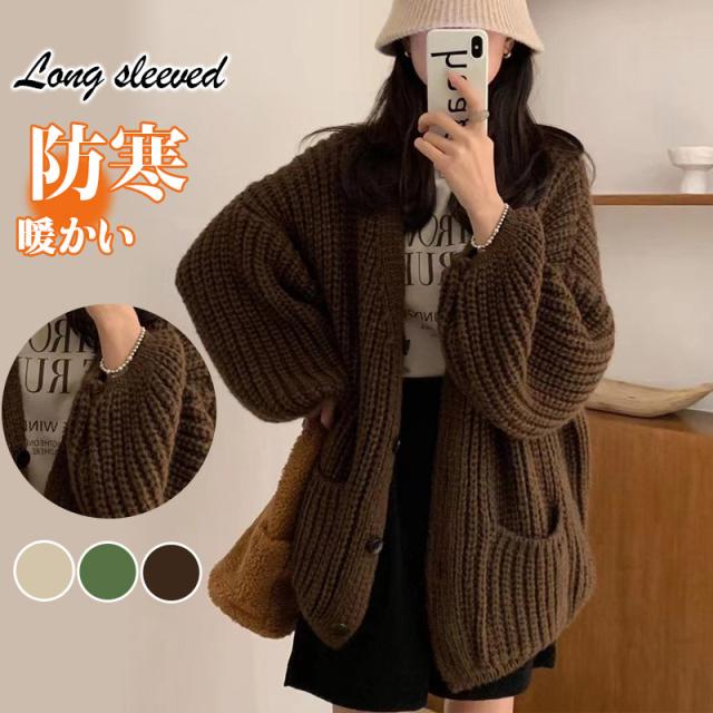 ニットカーディガン レディース カーディガン vネック セーター 秋冬 無地 アウター ニット 羽織り アウター 暖かい 防寒 韓