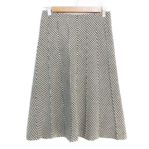 【中古】組曲sis クミキョクシス フレアスカート ミモレ丈 ウール 総柄 2 白 黒 ホワイト ブラック /FF44 レディース
