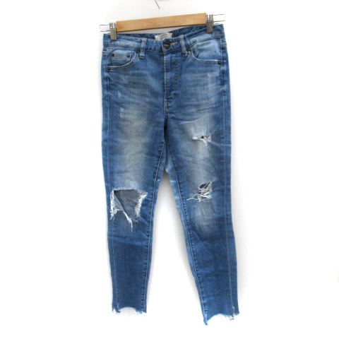 【中古】ローリーズファーム デニムパンツ ジーンズ スキニー アンクル丈 ダメージ加工 XS ライトブルー レディース