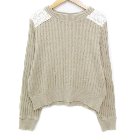 【中古】カロリナ グレイサー ニット カットソー 長袖 ボートネック ケーブル編み 刺繍 F ベージュ 白 レディース