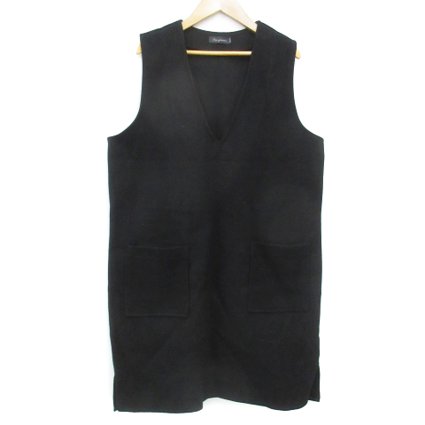 【中古】ラジェム ワンピース ジャンパースカート ひざ丈 ノースリーブ Vネック 無地 F 黒 ブラック /FF31 レディース