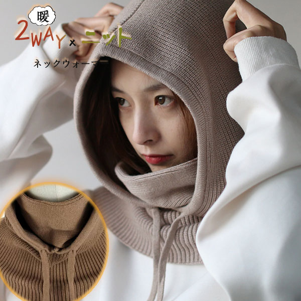 セール中 バラクラバ おしゃれ ネックウォーマー ニット レディース 帽子 フード マフラー かわいい ニット帽 防寒 自転車 フードウォーマー