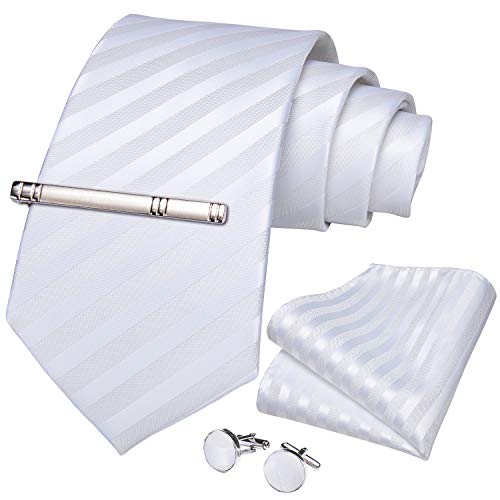 DiBanGu ネクタイ 結婚式 ホワイト ネクタイ ポケットチーフ タイクリップ セット ギフトボックス付き