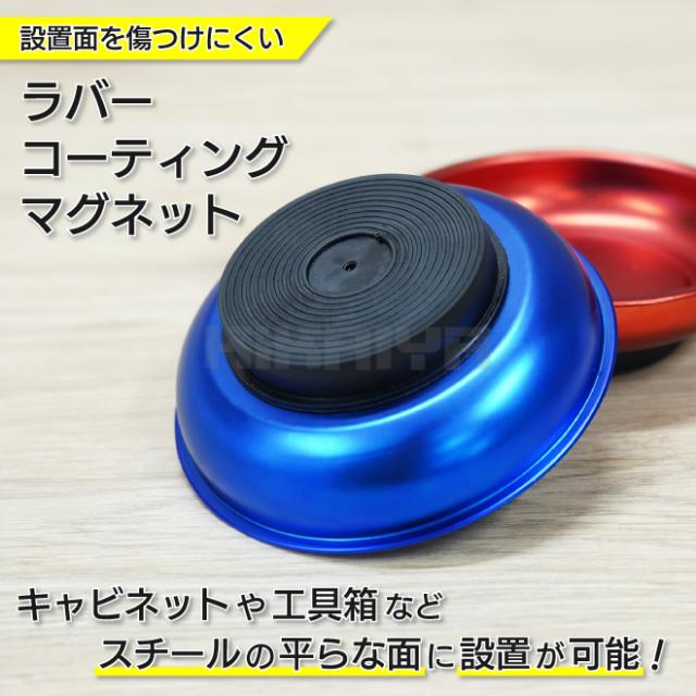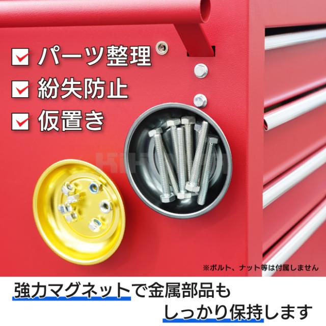 仕分けに便利な4色セット ●パーツやボルト、ナットなどの細々した物を収納できるパーツトレイ ●4色のトレーを色別に使用することでサイズ別・種類別のパーツ管理に便利です ●トレー部分は軽量なプラスチック製 ●底面のマグネットはラバーで覆われているため、接地面への傷つきを防ぎます ●強力マグネットで、垂直な面に設置してもボルトやナットなどの金属部品を しっかりと保持します ●使わない時は重ねて保管できます ※磁気の影響を受けやすい物に近づけないようご注意ください |