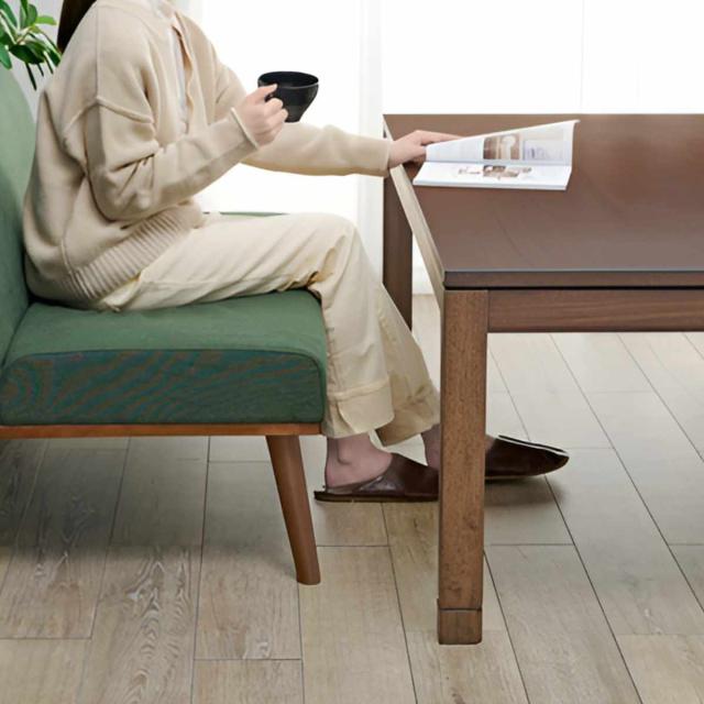 落ち着いた雰囲気と重厚感があるこたつシリーズです。趣のある和モダンなこたつテーブルは天板に天然木の突板を使用しているので自然のぬくもりを感じられます。普段はテーブルとして、冬はこたつになる1年中使えるテーブルです。